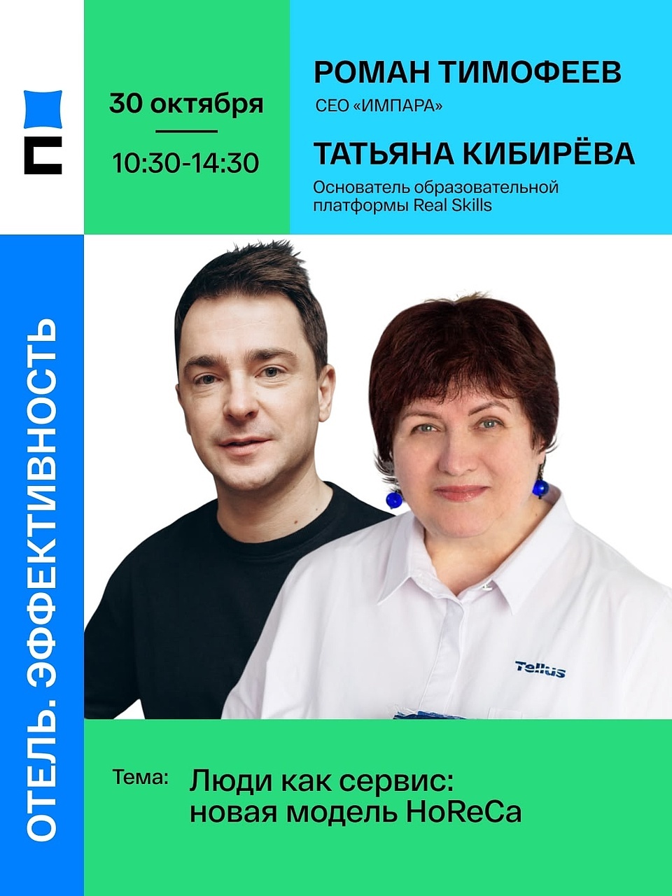 30 октября в 10.30 в рамках расширенной деловой программы мероприятия пройдет стратегическая сессия «Люди как сервис: новая модель HoReCa» для владельцев, генеральных менеджеров и управляющих отелей и ресторанов, которую проведет CEO компании «Импара» Роман Тимофеев и Татьяна Кибирёва, основатель образовательной платформы "Real Skills".